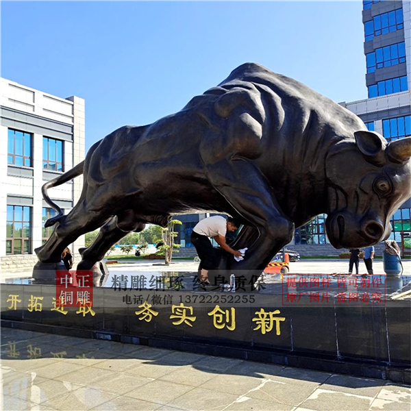 在工作中擺放銅牛擺件是祥瑞象征,由于牛很容易和力量聯系在一起,也有許多體育俱樂部或體育比賽用它作為自己的隊名、對標或是吉祥物。牛在中國文化中是勤勞的象征;在西方文化中是財富與力量的象征。