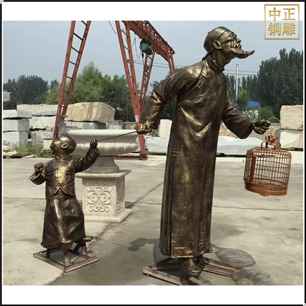 中正銅雕-遛鳥人物銅雕塑、遛鳥人物銅雕塑價格、遛鳥人物銅雕塑廠家,我公司集科研、開發設計、普通鑄造、一次性整體澆鑄、精密鑄造于一體。本公司技術力量雄厚,設備,不但重視中國青銅器原有的藝術風格,還繼承了文物原有的藝術品味,在繼承和發揚古老文化的同時,更深一步為新老客戶定身量制各種銅制、鐵制工藝品等產品,曾多次受到寺廟長老和美術學院教授的好評。