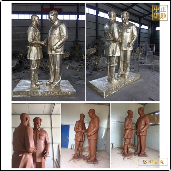 中正銅雕-名人外交銅雕塑鑄造 名人外交銅雕塑鑄造廠家 名人外交銅雕塑擺件鑄造,我公司集科研、開(kāi)發(fā)設(shè)計(jì)、普通鑄造、一次性整體澆鑄、精密鑄造于一體。本公司技術(shù)力量雄厚,設(shè)備,不但重視中國(guó)青銅器原有的藝術(shù)風(fēng)格,還繼承了文物原有的藝術(shù)品味,在繼承和發(fā)揚(yáng)古老文化的同時(shí),更深一步為新老客戶定身量制各種銅制、鐵制工藝品等產(chǎn)品。